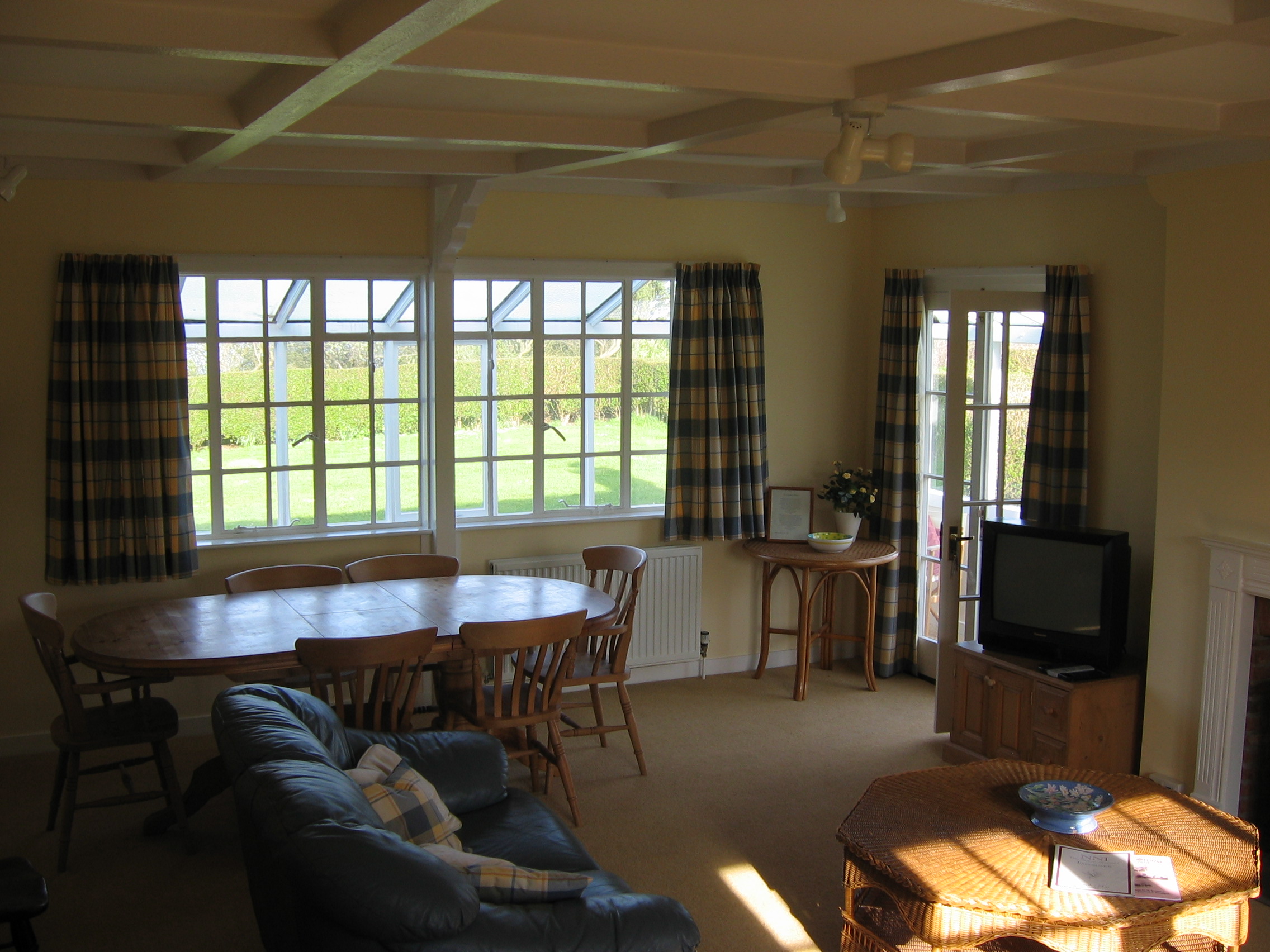 Large Sitting Room with dining table, electric fire, television and DVD player